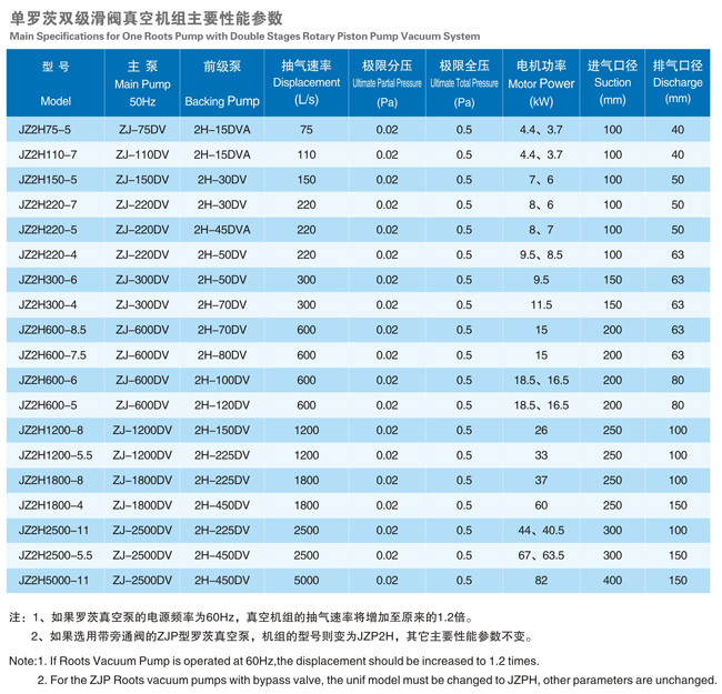 羅茨滑閥真空機組點連接可查機型配組和各類參數: