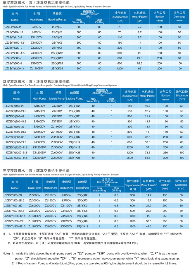 一、羅茨水環真空機組的最大抽速由主泵(羅茨泵)抽速決定;